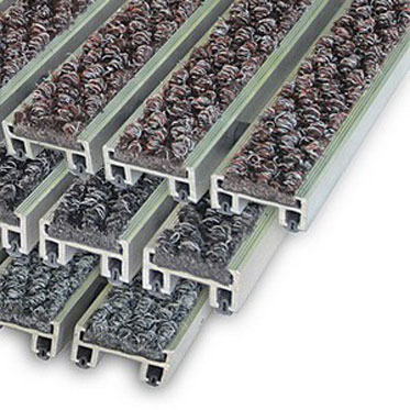 Исключительная износостойкость: Форма алюминиевого профиля (Н-образная конструкция) позволяет покрытию выдерживать интенсивное движение людей и колесных тележек ≥ 3500 человек в день, при такой нагрузке покрытие способно служить не менее 5 лет.