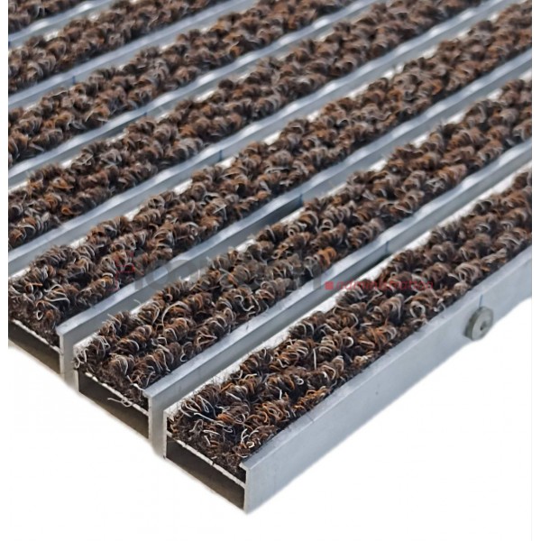 Исключительная износостойкость: Форма алюминиевого профиля (жесткая конструкция) позволяет покрытию выдерживать интенсивное движение людей и колесных тележек  5000 человек в день, при такой нагрузке покрытие способно служить не менее 5 лет.